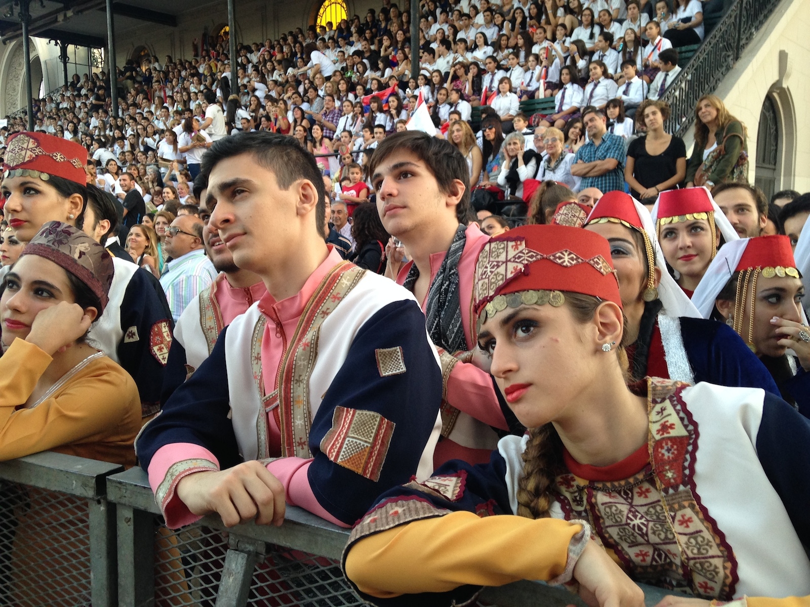 En lo que era un corral ahora hay un foro. Ahí se disponen a cantar cien voces en coro que no olvidan. Es el centenario del genocidio cometido por los turcos contra el pueblo de Armenia. En pocos minutos interpretan tres canciones que acercan y que hablan contra el silencio de la impunidad, con la tormenta del recuerdo... varias lágrimas ruedan. Son las 17 horas del 25 de abril y en las gradas aguardan los miembros de la comunidad armenia más numerosa en América Latina, y antes de dar paso a sus bailes convocan a la marcha hacia la embajada de Turquía y gritan fuerte que la impunidad y el olvido no son lo suyo.