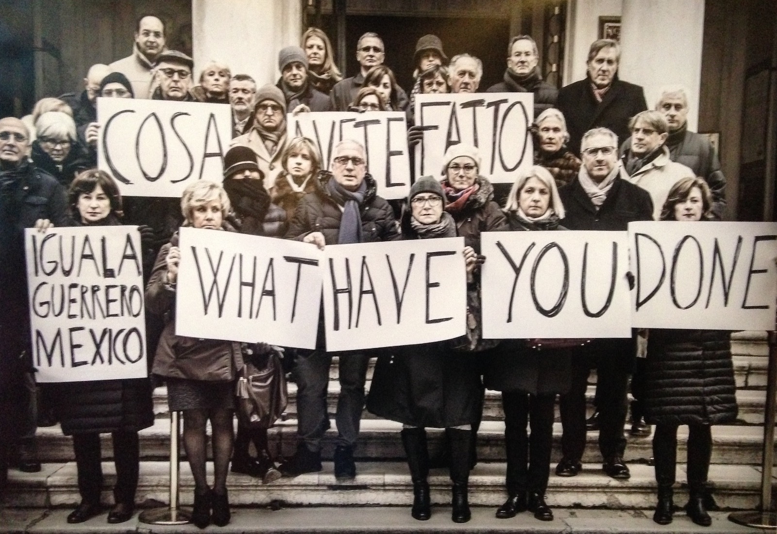 La exposición fotográfica Todos somos Ayotzinapa exhibe conmovedoras imágenes tomadas en casi todo el mundo en las que se expresan manifestaciones de apoyo, simpatía y solidaridad con los alumnos de la Raúl Isidro Burgos. En la era de las selfies, que entronizan la autorrepresentación y el culto al yo por encima de cualquier otra cosa, la muestra reivindica un lenguaje visual distinto en el que, a través de un retrato grupal, se pone en el centro a una comunidad imaginaria trasnacional unida fraternalmente en la tragedia y la exigencia de justicia.