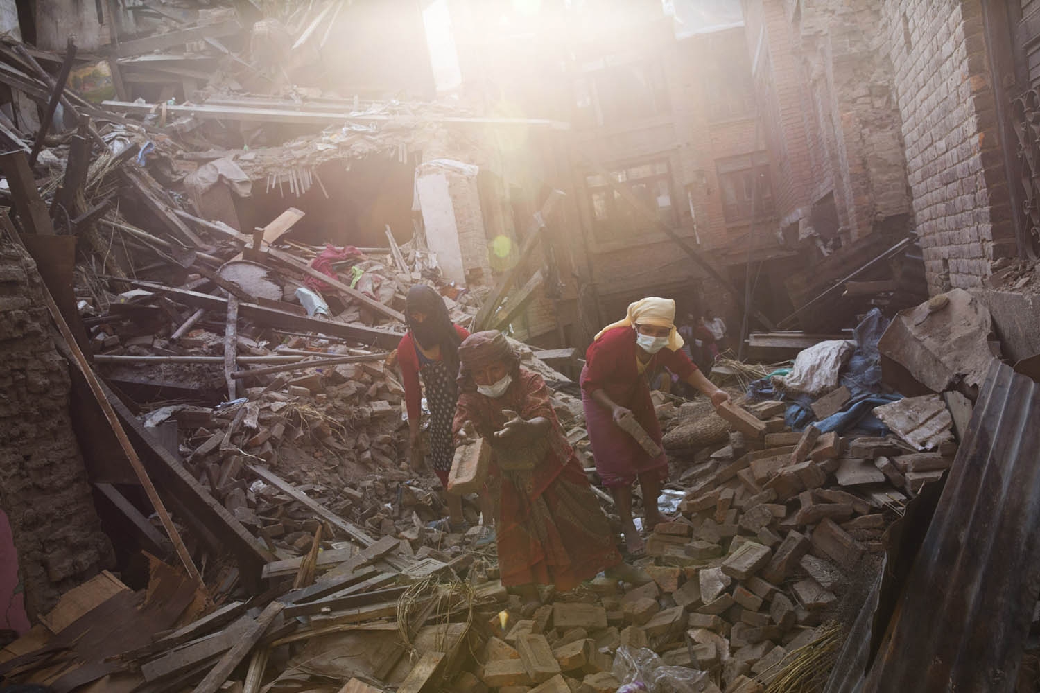 Algunos niños rescatan esteras de entre los escombros para improvisar carpas. Unas ancianas despejan trabajosamente rocas de lo que fueran sus casas. E hijos pródigos que corrieron a sus pueblos para consolar a sus madres levantan refugios para protegerlas de la lluvia.