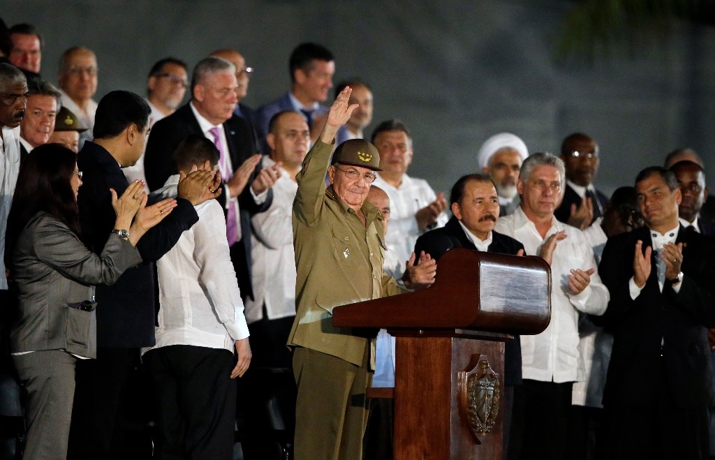 Entre los dignatarios que asistían al acto en La Habana se encontraban los presidentes de Bolivia, Evo Morales; Ecuador, Rafael Correa; Nicaragua, Daniel Ortega; Panamá, Juan Carlos Varela; El Salvador, Salvador Sánchez Cerén; y México, Enrique Peña Nieto.