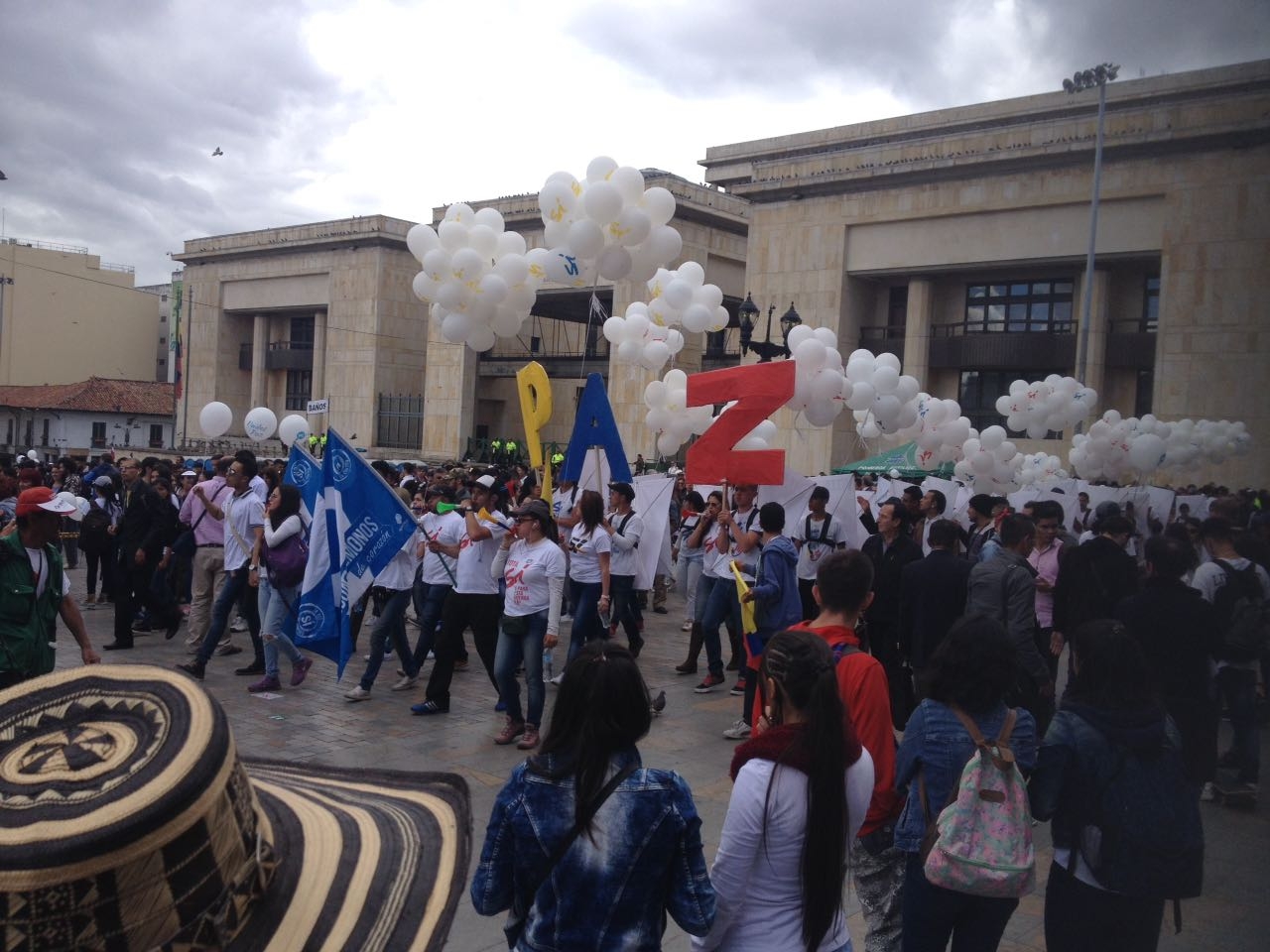 Ayer por la tarde, la plaza bolívar Bogotá se llenó de hombres, mujeres y jóvenes para celebrar la paz firmada entre el gobierno colombiano y las FARC.