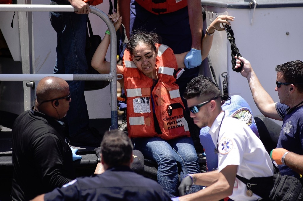 En el muelle se podía ver a decenas de personas transportadas en camillas para recibir tratamiento por deshidratación, hipertensión o problemas respiratorios, dijo el vocero de bomberos Juan Vega. Una camilla transportaba a un hombre a quien suministraban suero mientras sostenía un bebé recién nacido envuelto en un pañal.