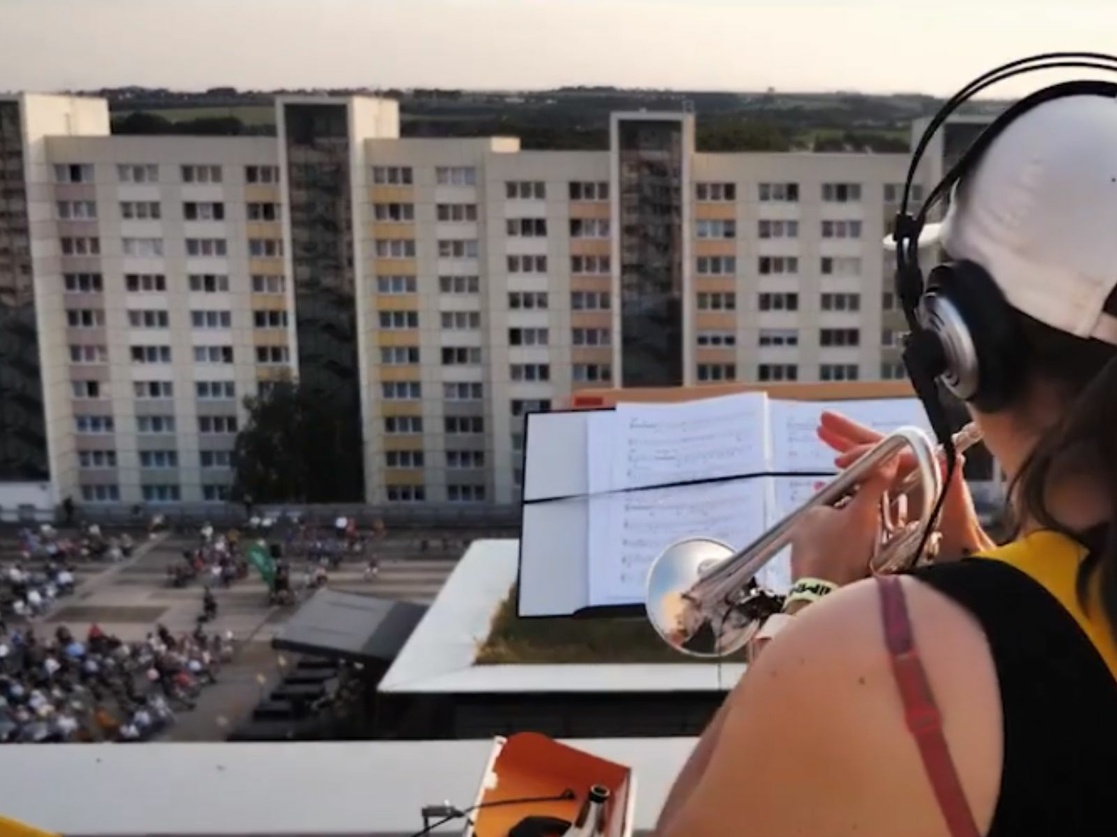 El espectacular concierto de la Orquesta Sinfónica de la ciudad de Dresde en las azoteas de los edificios del barrio de Prohlis, titulado Cielo sobre Prohlis, puede ahora ser visto y escuchado en línea, anunció ayer la formación cultural. Además, el canal de televisión Sachsen Fernsehen produjo, en colaboración con la campaña So geht sächsisch (Así funciona Sajonia), un documental, Behind the Scenes (Entre bastidores), sobre el surgimiento y el desarrollo del proyecto, según informó Markus Rindt, director artístico de la orquesta. El concierto causó sensación en septiembre de 2020. Dieciséis trompas alpinas, nueve trompetas, cuatro tubas y cuatro tambores chinos se habían posicionado en lo alto de los edificios y del aparcamiento de un centro comercial de Prohlis y llenaron de música el barrio.