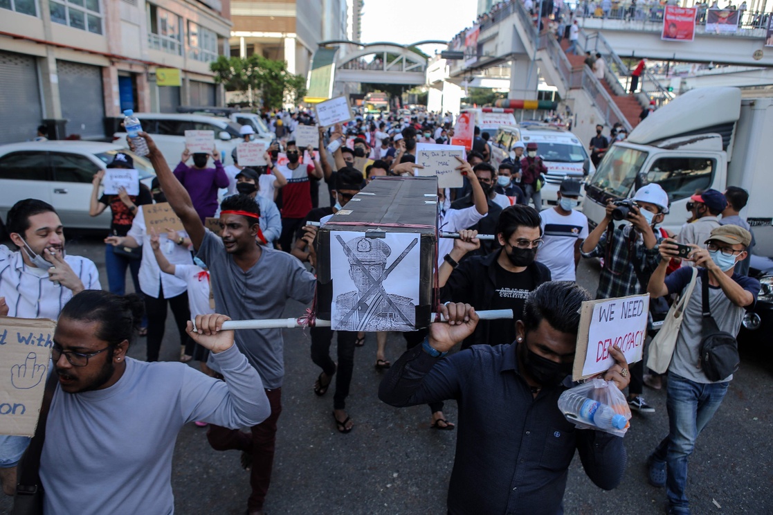Los birmanos volvieron este miércoles a las calles por quinto día consecutivo pese a la violenta represión y el ataque nocturno del ejército contra la sede del partido de Aung San Suu Kyi, que muestra la determinación de los generales golpistas ante los llamados a restablecer la democracia.