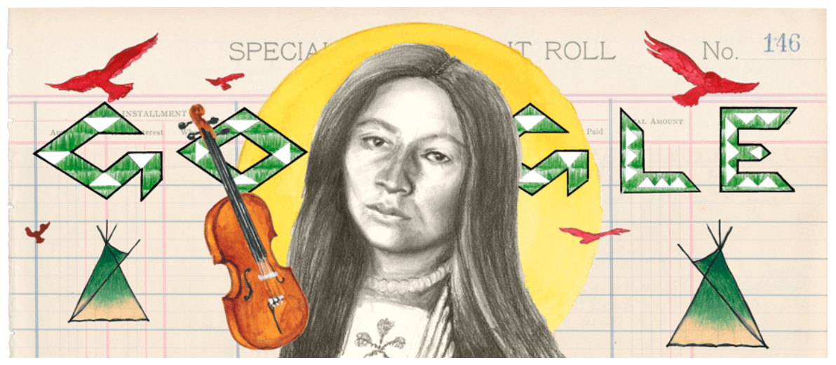 El Doodle de Google este lunes es un homenaje para Zitkala-Ša, una escritora, compositora, maestra y activista de la tribu Yankton Sioux, en Dakota del Sur.