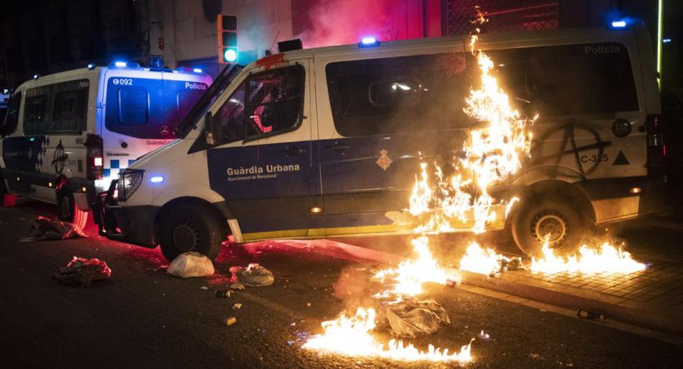 Las manifestaciones y los disturbios continúan este sábado en Barcelona, once días después del encarcelamiento del rapero español Pablo Hasél, con los incendios de un furgón de policía y contenedores y asaltos a comercios en otra noche de protestas violentas.