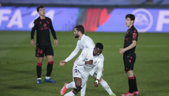 El Real Madrid dejó escapar la oportunidad de ponerse a tiro del líder Atlético de Madrid previo al derbi al conformarse ayer con un empate de local 1-1 contra la Real Sociedad. Pudo haber sido peor para los actuales campeones, salvándose de la derrota gracias a un gol postrero del delantero brasileño Vinícius Júnior. La igualdad frenó la racha de cuatro victorias de los merengues en la liga, para quedar así cinco puntos detrás de su rival de la capital — y que tiene un partido pendiente. El Madrid suma la misma cantidad de 53 puntos que el Barcelona, ocupante de la segunda plaza por mejor diferencia de goles.