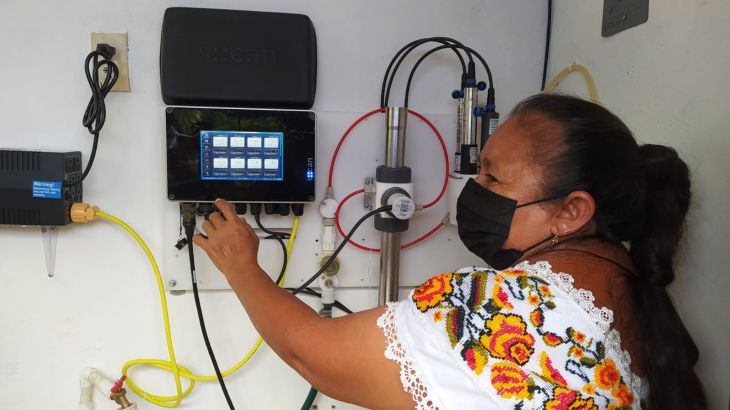 Cristina Reyese’, juntúul xkananil ja’, síij tu kaajil Tekax. Ichil u ch’e’ene’ u ts’áamaj jump’éel sensor yéetel le ku béeytal u xak’altik beyka’aj ma’alobil uk’be’en ja’ yaan tu baantail u k’íiwikil le kaajo’.