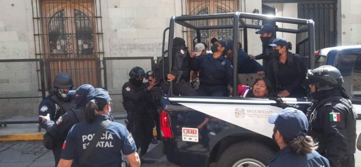 Máaxo’ob ku meyajo’ob ti’ mola’ay kaláantik kaaj tu péetlu’umil Oaxacae’ tu machajo’ob Lorena Merino, yéetel uláak’ jump’éel múuch’il máak táan ka’ach u líik’siko’ob t’aan tu táanakbil u kúuchil Palacio de Gobierno.
