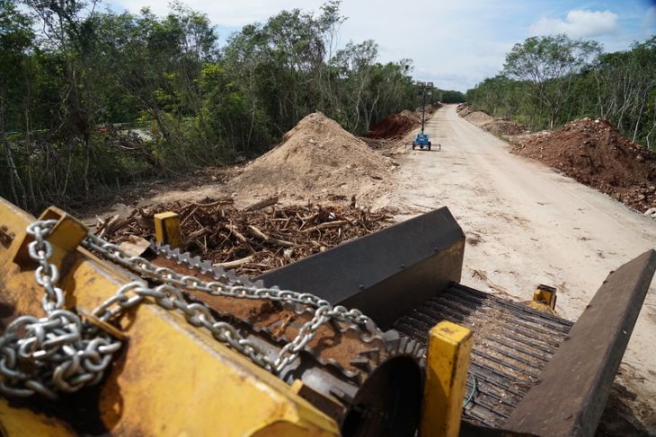 En español: Ingresan MIA de camino alterno para transportar balasto en Puerto Morelos
