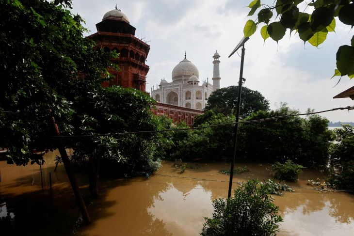En español: Aguas de río desbordado en India llegan a muros externos del Taj Mahal