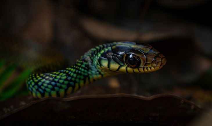 En español: Culebra corredora de petatillos, una de las especies más bonitas de la península de Yucatán