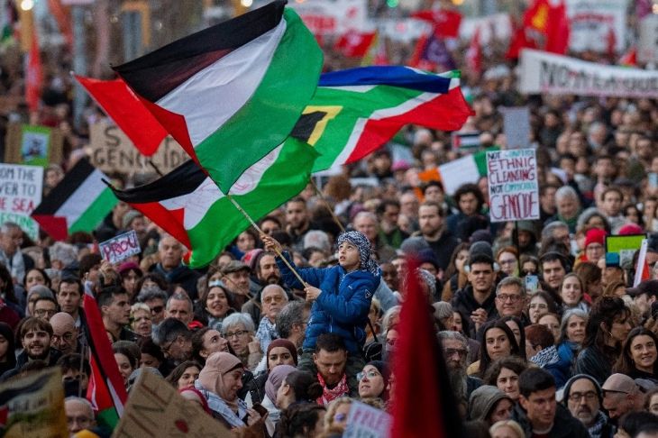 Tu noj kaajil Madride’, 25 mil máako’ob, je’el bix a’alabik tumen jala’acho’obe’, xíimbalnajo’ob tu baantail Atocha yéetel plaza Cibeles, yéetel ju’uno’ob e’esik u paanil palestonoil lu’um, ti’al u k’áata’al ka “xu’uluk u ko’onol ts’oono’ob yéetel ka xo’ot’ok t’aan yéetel Israel”.