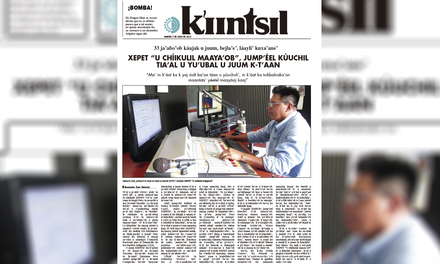 Ichil jump’éel tsikbal tu beetaj K’iintsil yéetel Victor Canto, máax jo’olbesik XEPETe’, tu ya’alaje’ ts’o’ok u máan k’iin káajak u meyaj ti’ le kúuchila’, yéetel jach ki’imak u yóol yo’olal bix u yilik u bin u xíimbal le kúuchila’, tu’ux ku ts’a’abal u juum u t’aan maayáaj kaaj. Ti’ le k’iino’oba’ XEPETe’ ku meyaj yéetel lajuntúul máak, ichil máaxo’ob ku t’aano’ob ti’ cabina, máaxo’ob yano’ob ti’ le ku k’aba’tik fonoteca de radio, máaxo’ob beetik jejeláas nu’ukbesajo’ob, péektsilo’ob yéetel máaxo’ob ku kaláantiko’ob u ma’alob meyaj le nu’ukulo’obo’.