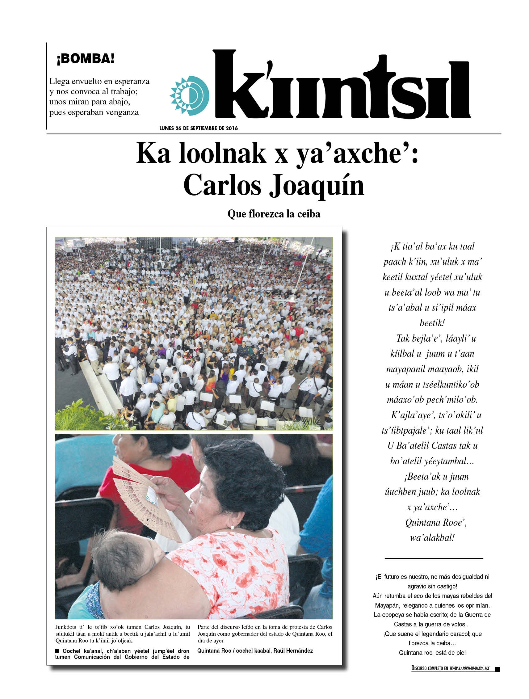 ¡Beeta’ak u juum úuchben juub; ka loolnak x ya’axche’… Quintana Rooe’, wa’alakbal!