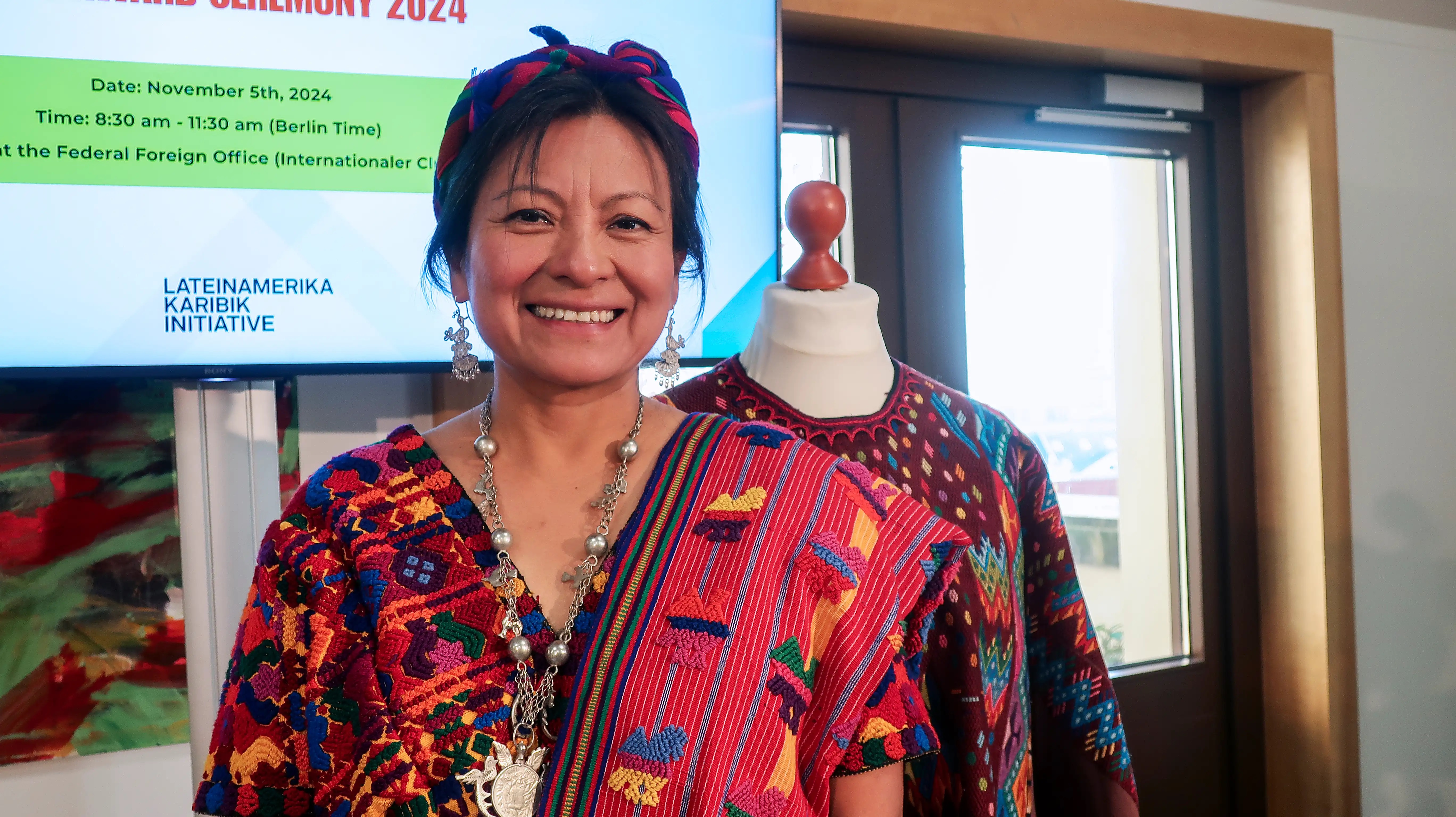 Aspuac, kaqchikel ko’olele’, tu k’amaj tu lu’umil Berlín u noj chíimpolalil Premio Unidas a los Derechos de la Mujer y la Democracia ku k’u’ubul tumen Ministerio de Exteriores de Alemania, máax tu ya’alaje’, u iniciatiibail a’almajt’aane’ “láayli’ táan u xak’alta’al ti’al u éejenta’al”.