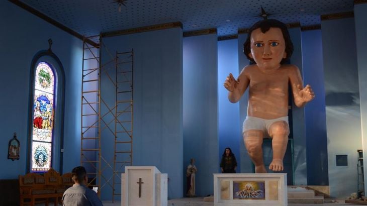 "La iglesia tiene ocho metros del techo al suelo, y yo encargué una imagen de seis metros y medio. No tuve nunca la finalidad de que fuera el niño más grande del mundo, simplemente se adaptaba al tamaño de la parroquia", explicó el cura Humberto Rodríguez.