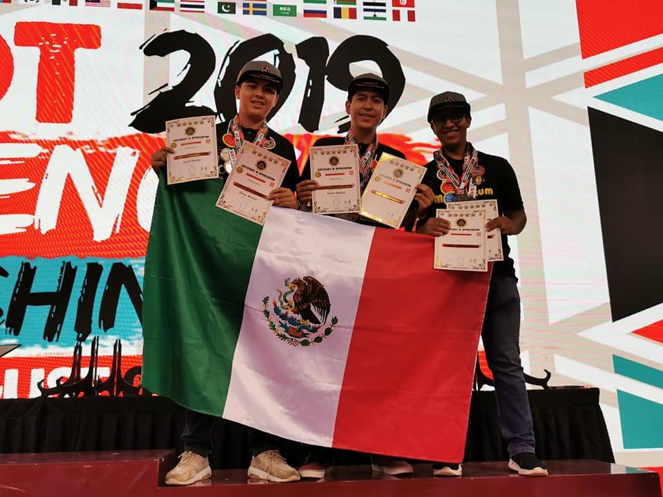 Félix Ricardo Pérez León, Carlos Uriel Cruz Jiménez y Alan Alberto Cruz García, integrantes del Club Momentum Oaxaca y estudiantes del Centro de Inclusión Digital de la misma entidad, se alzaron como ganadores en el encuentro [i]Robotchallenge 2019[/i], realizado en Beijing, China, en días pasados.