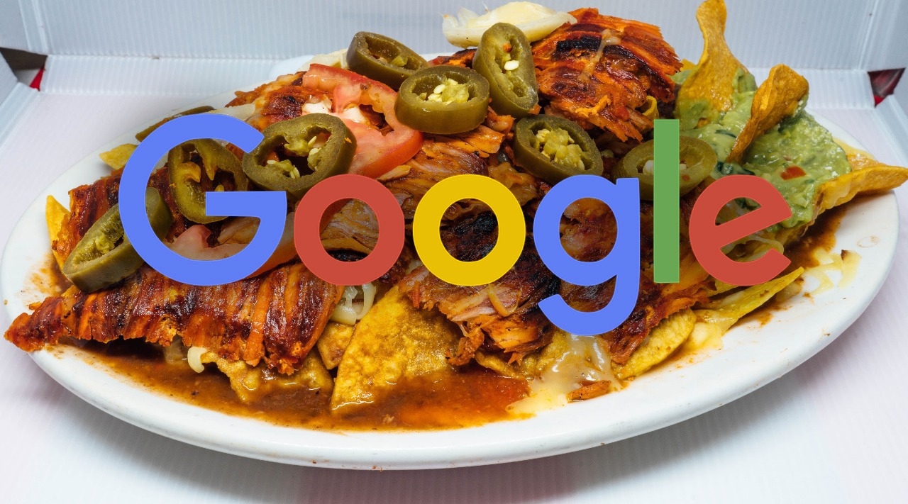 En su página principal, Google muestra los pasos a seguir para la preparación de este platillo con tortilla frita y de forma triangular, queso y trozos de chile.