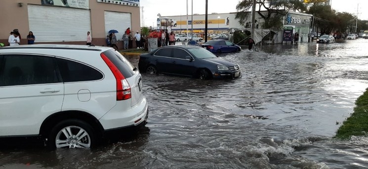 En el fraccionamiento Landeros Gallegos dos vehículos fueron literalmente cubiertos por la lluvia. Además de éstos un total de 14 vehículos se quedaron varados.