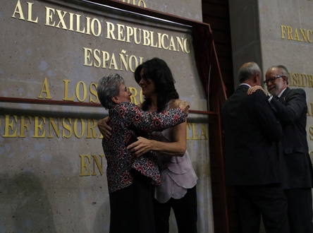 Muñoz Ledo, entonces fue breve: "honramos a los transterrados que enriquecieron nuestra cultura y nuestra convivencia social, a nuestros maestros, a los artistas, científicos, profesionales y al laborioso pueblo de cepa española. Recordamos al gran estadista que entendió su tiempo como ninguno, combatió las dictaduras y organizó personal y generosamente el tránsito de los refugiados, el general Lázaro Cárdenas del Río. Las letras de oro que develamos hoy hacen perdurable la intención y la realización de esta gran hazaña. Devolvemos con esta placa lo que hemos recibido; vuelve perdurable a la intención, a la conversión de la tragedia en vida nueva y larga esperanza".