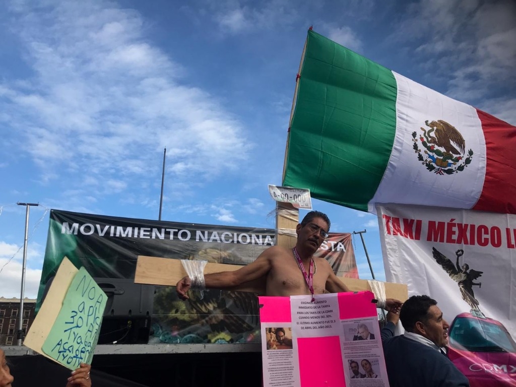 De forma ordenada comenzaron a retirarse todos los taxis que pintaron por un momento la plancha del Zócalo de color rosa con blanco y al que se sumaron microbuses y combis de diversas rutas de la Ciudad de México, algunos llegaron a crucificarse en señal de protesta.