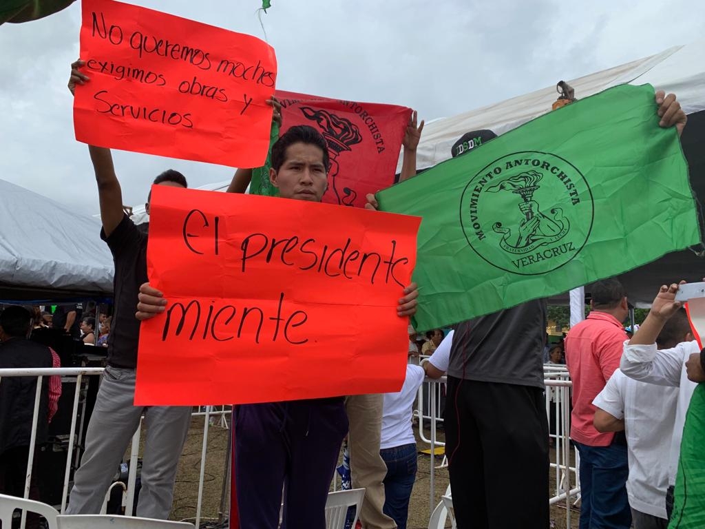 “‘Miente, miente, el presidente”, “respeto para Antorcha”, gritaron durante casi todo el discurso del mandatario.