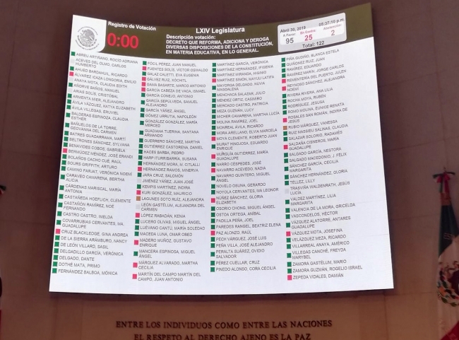 Siguió después la discusión de las 23 reservas de la oposición a los tres artículos constitucionales que conforman la reforma educativa, Ninguna pasó, ya que Morena y sus aliados votaron en contra.