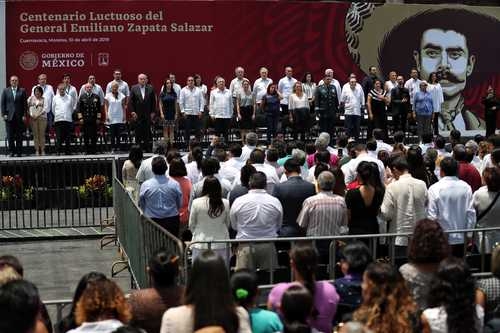 Al cumplirse 100 años del asesinato de Emiliano Zapata Salazar, el presidente Andrés Manuel López Obrador reivindicó los ideales de justicia del Caudillo del Sur y los héroes nacionales de la Independencia, la Reforma y la Revolución, y pidió a su gabinete emularlos y no traicionarlos, porque "ahí está el plan de gobierno, el camino a seguir, lo demás no sirve, es politiquería".