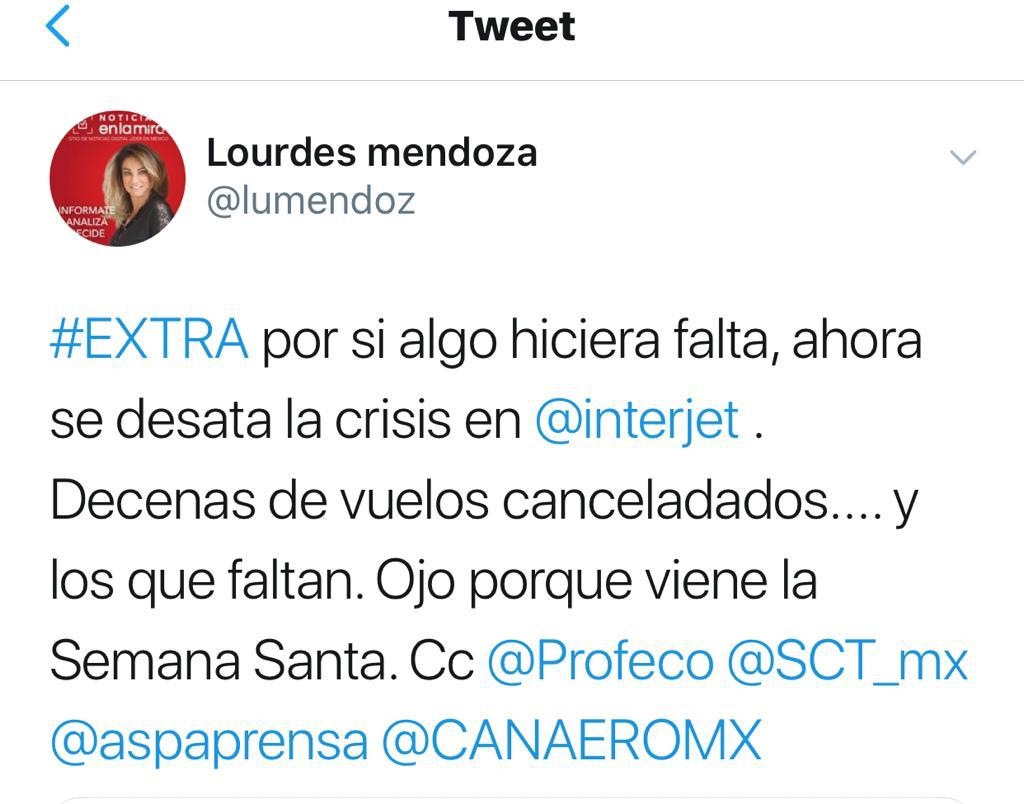 Según informan medios nacionales y locales, la aerolínea Interjet, al corte de las 13:30 horas, canceló 17 vuelos por falta de personal a diferentes ciudades desde el Aeropuerto Internacional de la Ciudad de México (AICM), y se espera que se cancelen unos 24 vuelos más en este fin de semana.