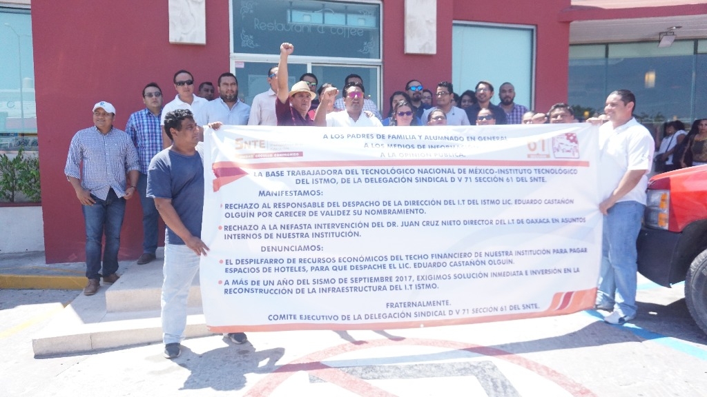 La base trabajadora del Instituto Tecnológico del Istmo que reúne a mas de 300 sindicalizados protestaron para exigir la salida del director del plantel, Eduardo Castañón Olguín, a quien acusan de corrupto y tener antecedentes de acoso sexual.