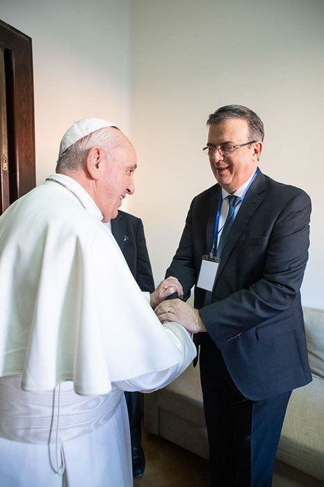 "Agradezco a Su Santidad el papa Francisco ?sus conceptos y cordialidad en la visita que le hice la semana pasada. Además de grandes coincidencias con postulados sociales del gobierno del presidente López Obrador le tiene un gran afecto al pueblo de México. Gracias!!!", escribió el canciller.