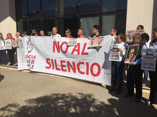 A siete meses del asesinato del escritor y corresponsal de [i]La Jornada[/i], Javier Valdez Cárdenas, periodistas, familiares y activistas protestaron este viernes afuera de la Fiscalía General del estado para exigir al titular de esa dependencia Juan José Ríos Estavillo, comparezca ante el Congreso estatal para que entregue avances de las investigaciones por ese crimen, luego de que se negó a hacerlo presencialmente el pasado 10 de diciembre.