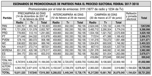 Las cifras marcan un crecimiento exponencial en la propaganda: algunos estudios estiman en 700 mil los promocionales comprados por los partidos en 2006, sólo para el periodo de campañas políticas para este proceso –cuando los partidos destinaron entre 70 y 90 por ciento de sus gastos a la compra de espacios–, éstos tendrán ahora acceso a 41 millones de mensajes desde la precampaña, la intercampaña (ambas no reguladas aún en 2006) y la campaña política.