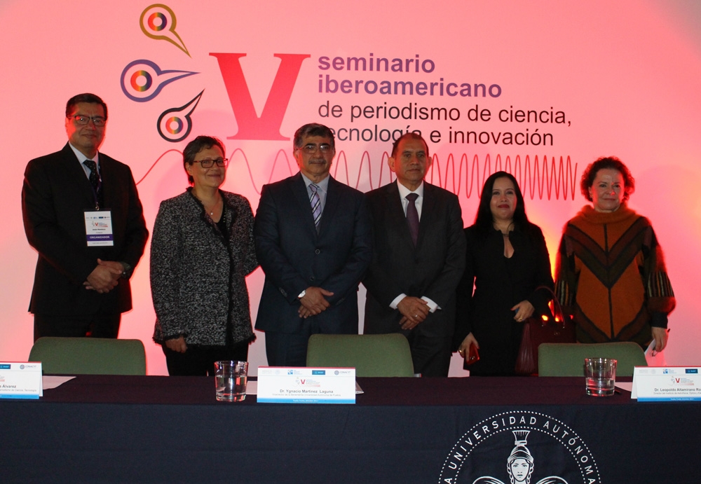 Con un reconocimiento a la labor que desempeña el periodista de ciencia, “porque con su actividad ayuda a comprender el papel que tiene el hombre en el mundo”, Enrique Cabrero Mendoza, director general del Consejo Nacional de Ciencia y Tecnología (Conacyt), participó en la inauguración del quinto Seminario Iberoamericano de Periodismo de Ciencia, Tecnología e Innovación, en el Centro Cultural de la Benemérita Universidad Autónoma de Puebla (BUAP).