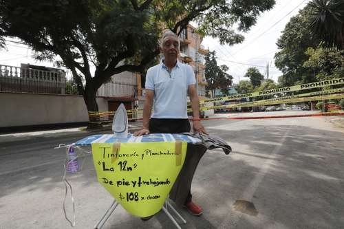 Sin ningún apoyo gubernamental, Enrique Alcántar García, de 69 años de edad, decidió montar su propia planchaduría en plena calle y a un costado del campamento que desde el 19 de septiembre habilitó, junto con sus vecinos, tras el colapso del edificio ubicado en Concepción Béistegui y Yácatas, en la colonia Narvarte, donde se encontraba el negocio donde laboraba desde hace nueve años.