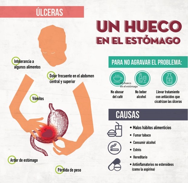 Luego de comer, el estómago usa los jugos gástricos para descomponer los alimentos que se han ingerido. El revestimiento mucoso protege al estómago, duodeno y esófago de dichos ácidos. Cuando la cantidad de ácido aumenta, forma una lesión en las paredes denominada úlcera gástrica o péptica.