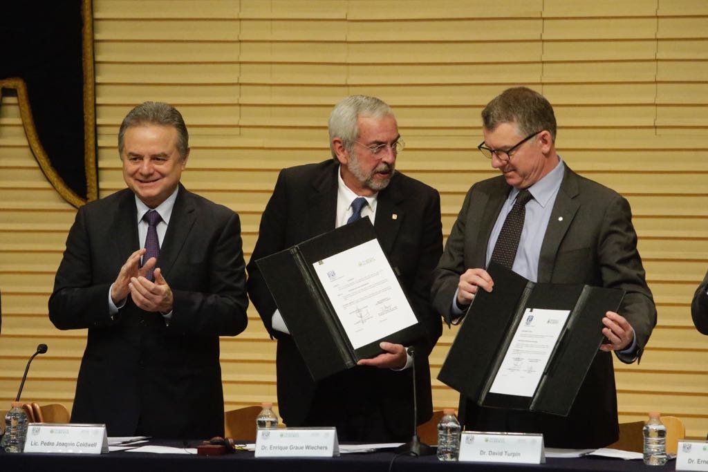El rector de la máxima casa de estudios, Enrique Graue Wiechers, subrayó que el convenio firmado significa el reconocimiento de que “en la ciencia no hay fronteras, en tiempos de aislamientos y nacionalismos como este”.
