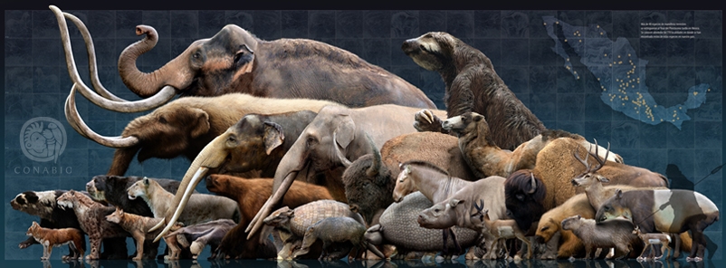 Hace 10 000 años, cuando los primeros seres humanos comenzaban a poblar el continente americano, se extinguieron diversas especies de megafauna en México como los perezosos, armadillos gigantes, mamuts, mastodontes, gonfoterios, caballos, camellos, osos, berrendos, capibaras, bisontes, felinos y cánidos de los cuales se han hallado fósiles. No existe una razón que explique su desaparición, más bien, los paleontólogos consideran que fue un conjunto de variables las que ocasionaron su muerte.
