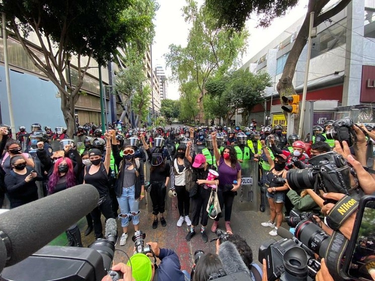 Desde medio día, decenas de uniformados hicieron una valla en la calle de Liverpool y en la Glorieta de Insurgentes, y acordonaron las calles aledañas a sus instalaciones, como medida de prevención ante eventuales actos de vandalismo que se pudieran presentar.