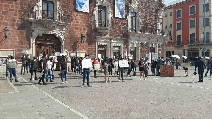 Cerca de un centenar de jóvenes se manifestaron a las afueras de palacio de gobierno del estado, en la Plaza de la Patria, donde exigieron justicia "para Giovanni y para Melanie", López, quien fuera ultimado en Jalisco hace un mes y Melanie una jovencita golpeada en la manifestación de este viernes en la Ciudad de México.