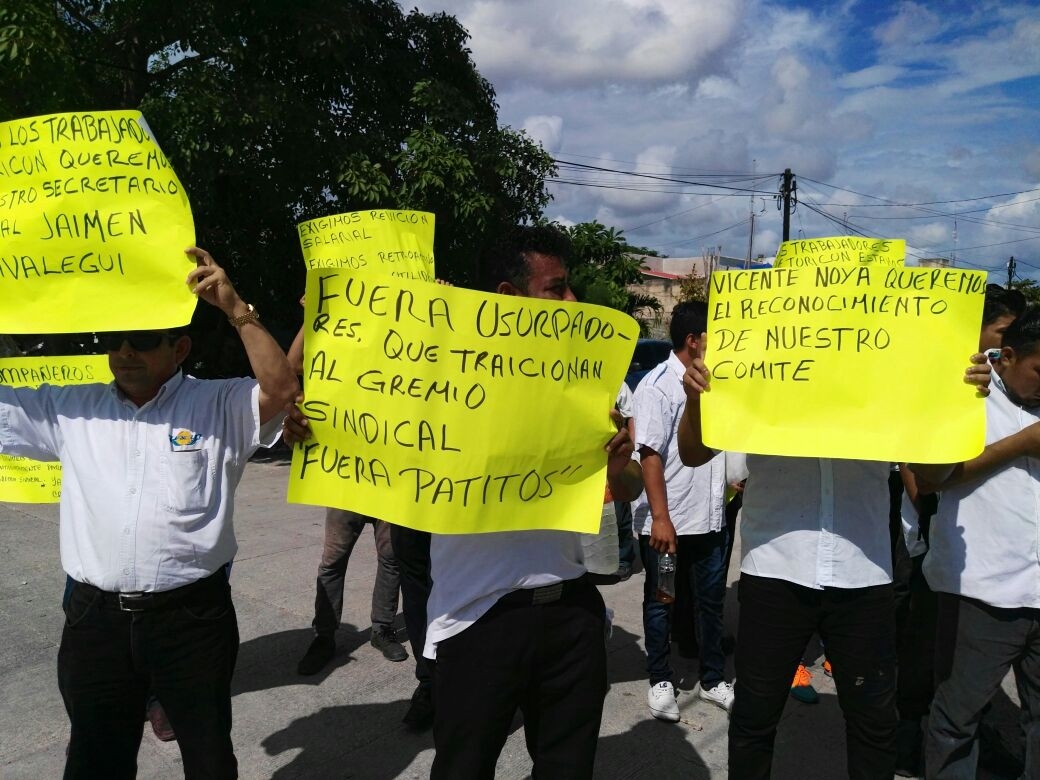 Después de casi dos horas, arribó un grupo de policías que intentaron replegar a los manifestantes con palos y sillas, los manifestantes respondieron lanzando piedras y gases.