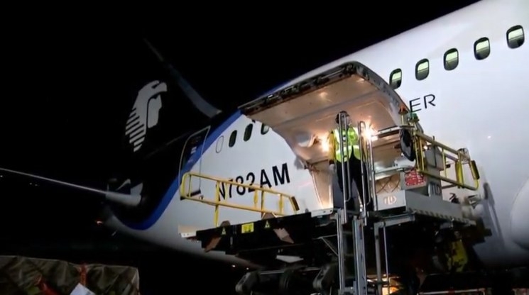 Los productos que llegaron en el Boeing 787 de Aeroméxico -bautizado Misionero de la Paz (vuelo AMX 9835)- son mil 184 cajas con 10.1 toneladas de guantes exploración (un millón de piezas) y mascarilla N95 (800 mil).