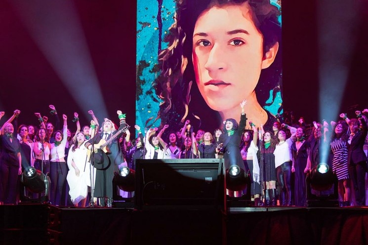Después, la chilena invita al Coro del Palomar, conformado por mujeres músicas, al escenario. Mon Laferte, cuenta, las invitó para darles espacio y les pidió que escribieran una canción, misma que ellas dedican a las mexicanas.