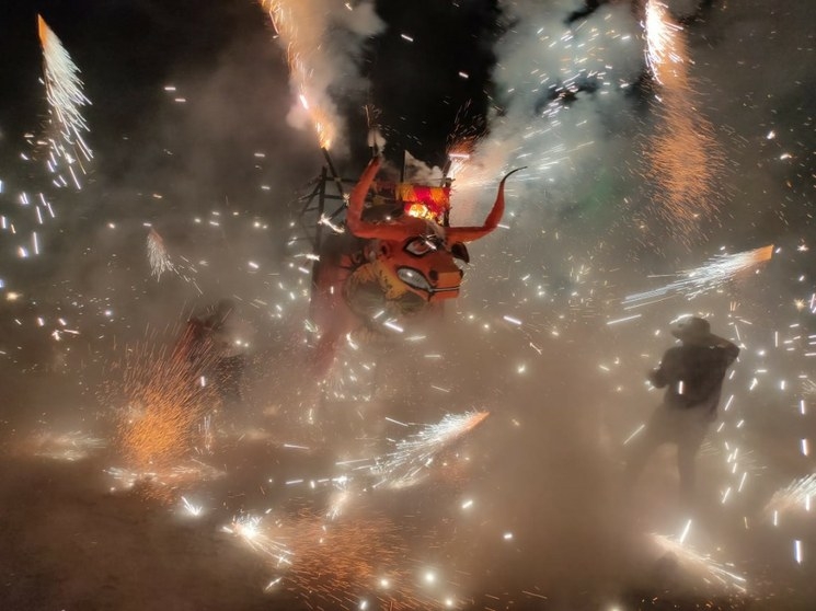 Este sábado, familias de barrios y colonias avanzan por calles del municipio jalando las piezas monumentales de toros multicolor, y en caravana honrarán a San Juan de Dios, para dar gracias por las ventas de este año, porque no han aumentado los accidentes y “por un año más de vida, y que las explosiones no nos alcancen”, dice el señor Abraham Palacios.