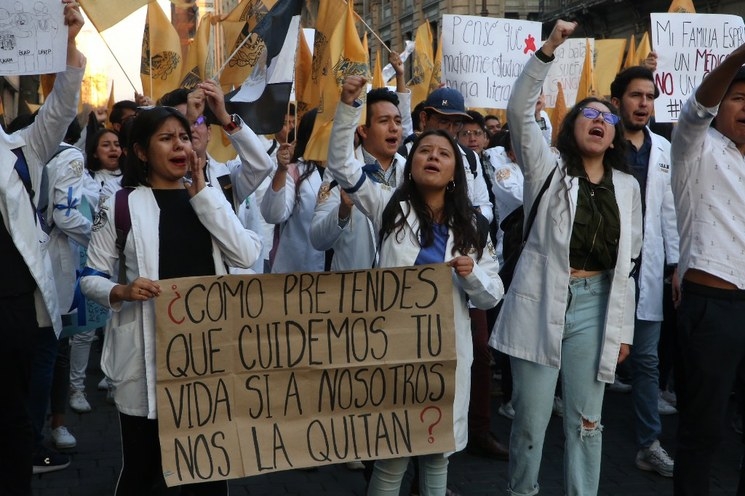 Estudiantes de medicina de diversas instituciones de educación superior marcharon esta mañana del Palacio de las Bellas Artes al Zócalo capitalino, en exigencia de justicia para una doctora y tres estudiantes de esa carrera asesinados en las últimas semanas, en la Ciudad de México y en Puebla, respectivamente.