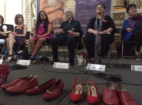 Las escritoras, quienes colocaron zapatillas rojas en el estrado, se pronunciaron contra la violencia en el país y leyeron fragmentos de sus obras; incluso, compartieron textos que todavía no publican.