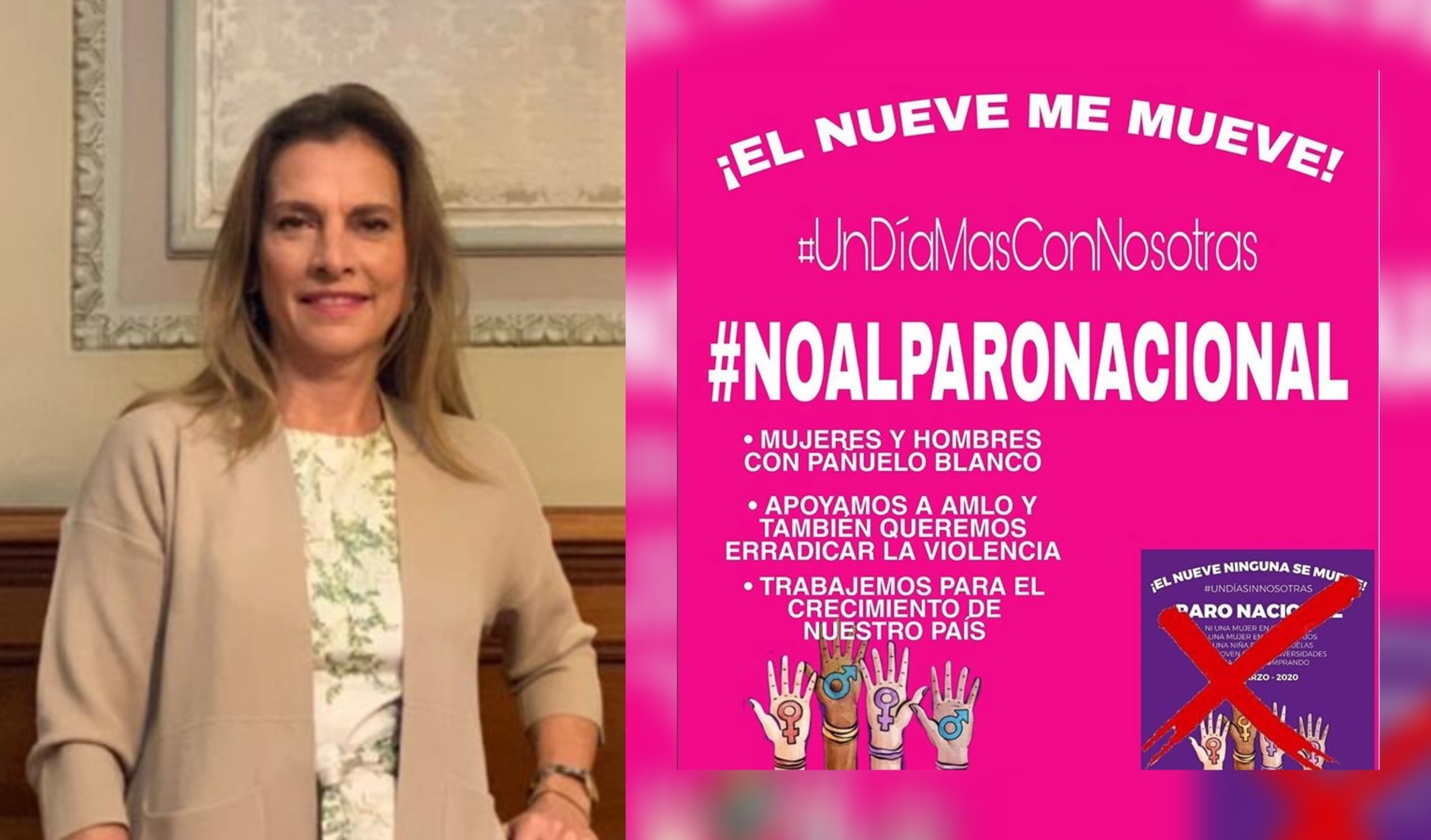 Menos de seis horas después, Gutiérrez Müller cambió su postura al publicar otra imagen en la que dice: “¡El nueve me mueve! #UnDíaMásConNosotras #NoAlParoNacional”, invitando a que el 9 de marzo las mujeres porten un pañuelo blanco, que apoyen al presidente Andrés Manuel López Obrador a erradicar la violencia y a trabajar para el crecimiento del país, todo lo contrario a su postura inicial.
