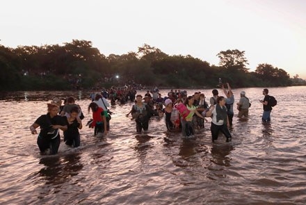 La multitud, que permanecía en un albergue ubicado en la ciudad de Tecún Umán, Guatemala, entró con banderas de diferentes países, incluida la de Estados Unidos, gritando: "¡Viva México!" y “¡Vamos pa’arriba!” Luego tomó la carretera federal que conduce a Tapachula –que está a unos 40 kilómetros del río–, por lo que los uniformados se dirigieron al vecino municipio de Frontera Hidalgo para intentar contenerla.