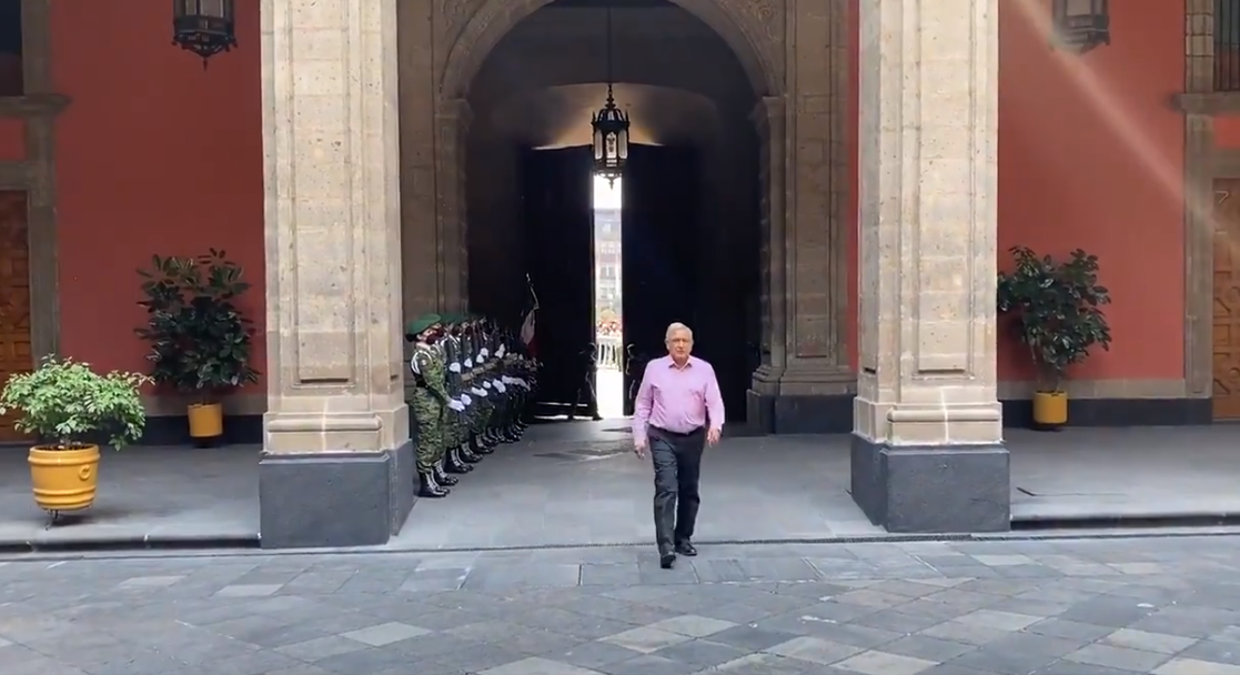 Además, difundió un video del momento en que arriba a Palacio Nacional, y saluda a los efectivos militares que resguardan el recinto.